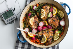 Termometern har en inbyggd timer och drivs av fyra AAA-batterier (ingår ej). Den kan mäta temperaturer upp till 250 grader och har en trådlös räckvidd på upp till 30 meter, vilket ger frihet att röra sig runt i köket eller vardagsrummet medan maten tillagas.
