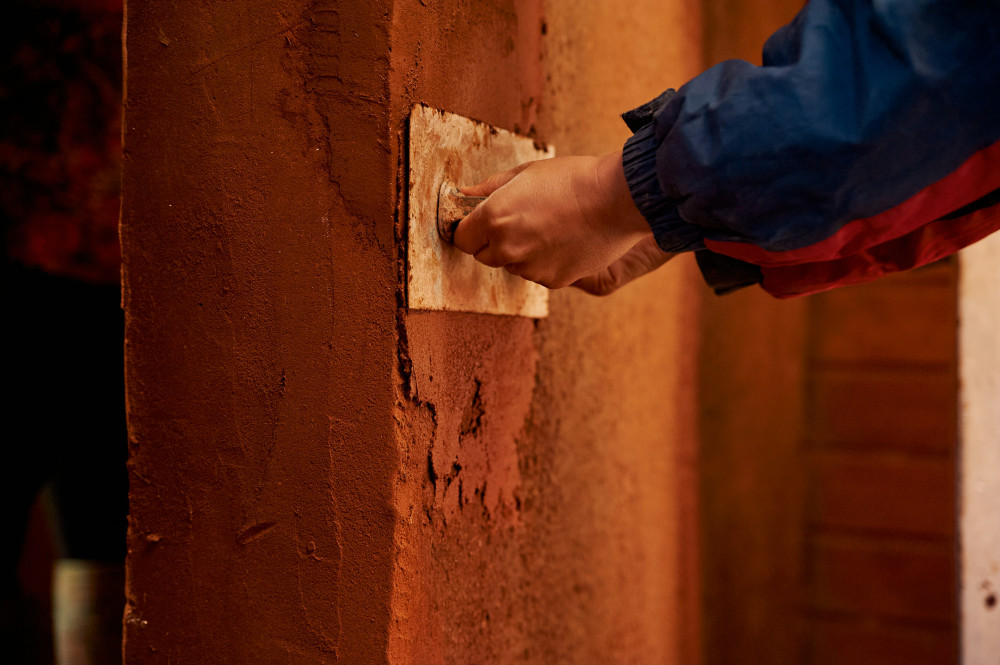 - Murbruk som smular när du drar med fingret över det.